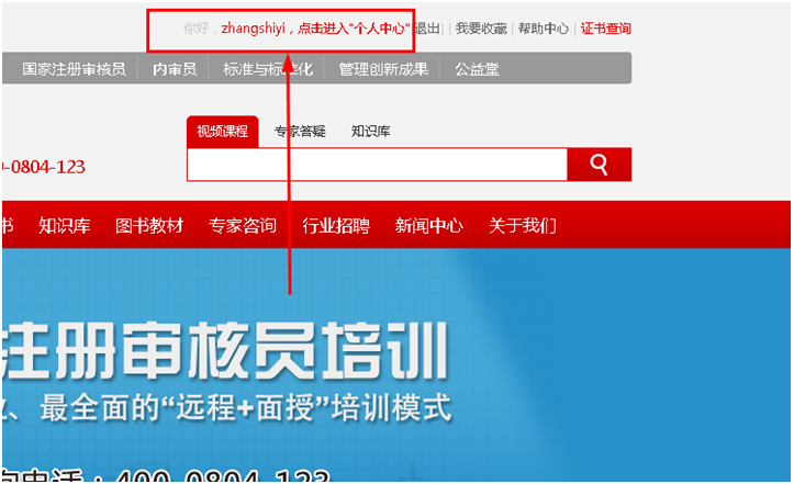 3 登陆成功后,页面自动返回到登录前的页面。您可以点击首页上方的用户名或通过页面的快捷通道进入“个人中心”。(如下图)