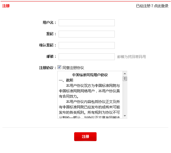 1、点击首页(www.123iso.com)上方的“注册”按钮,页面自动跳转到用户注册页面:(如图)