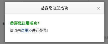 2、用户名、密码、邮箱都是由用户自己设定的,信息填写无误后,点击注册,页面提示“恭喜您注册成功”(如图):